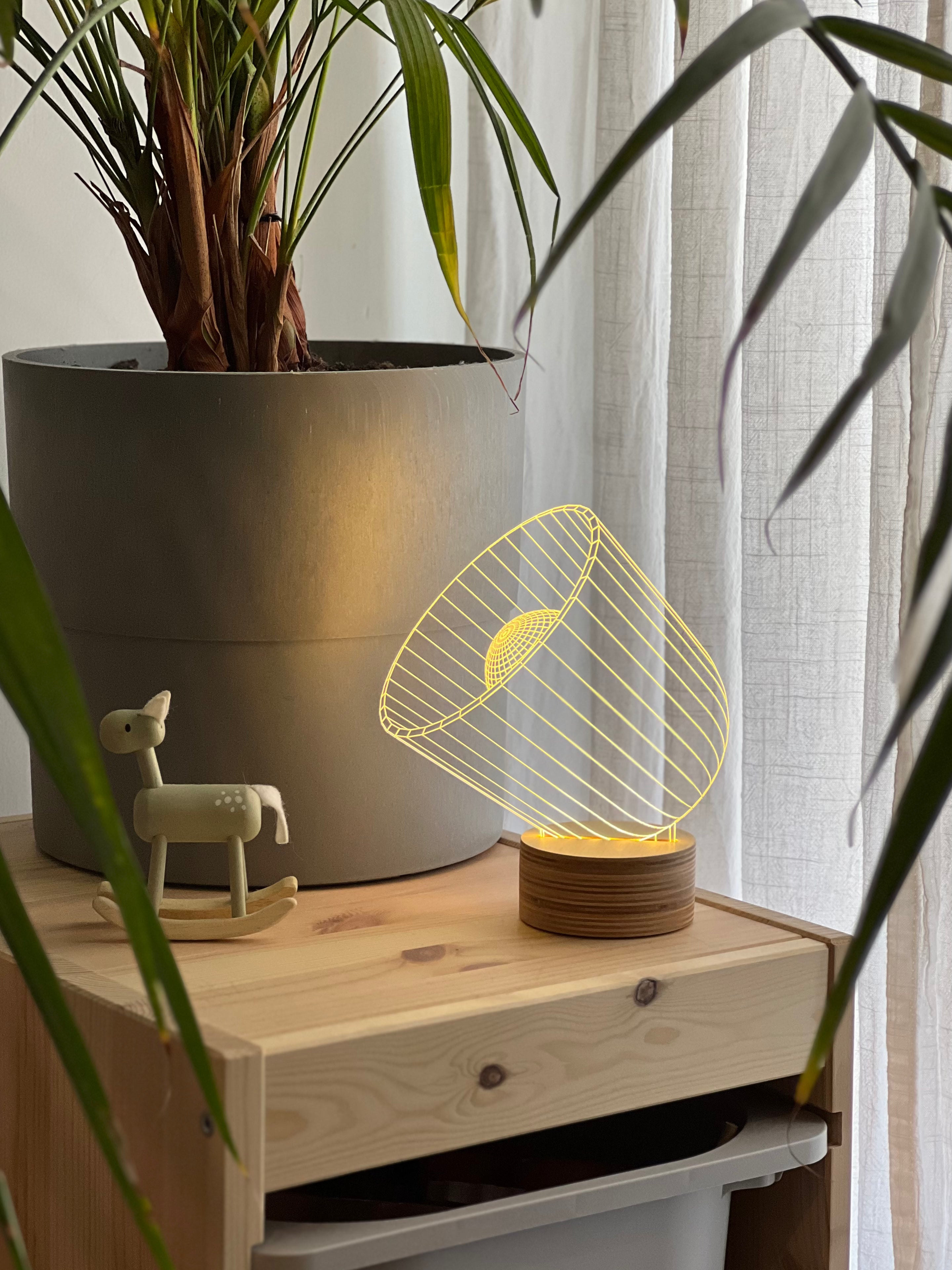 Our signature unique lamp light brings creative lighting to your home. This 3D illusion lamp, made of eco-friendly LED light, is actually flat (2D) - we know, it's hard to believe! Made of a thin piece of acrylic glass and laser engraved, insert your lamp into the sturdy wooden base for it to begin to glow. It's so simple, and cool, there's a reason that the BULBING is one of the most popular lamps on the market today.